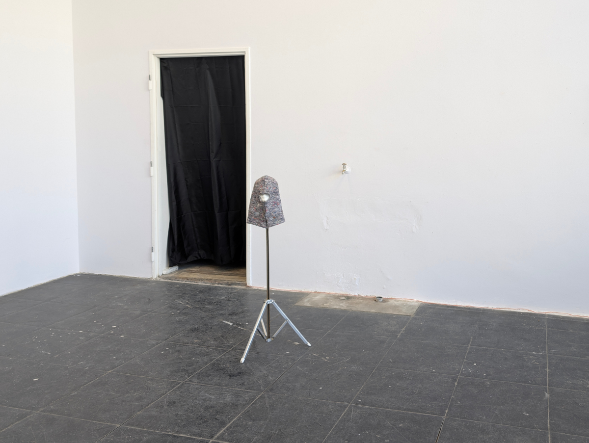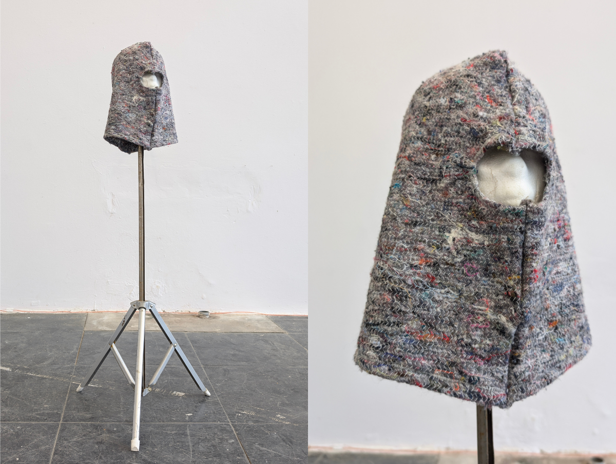 Malervlies, Nähgarn, Styroporkopf, Metallständer